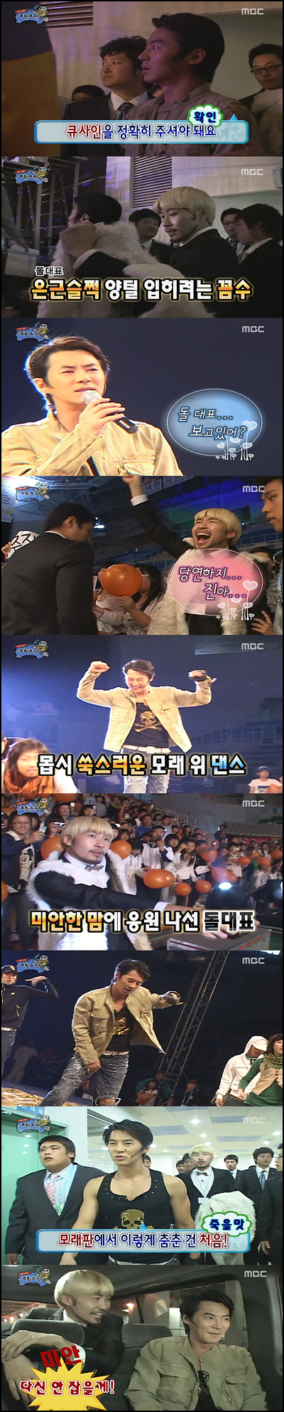 JunJin's manager was Noh Hong Chul, with the long wool vest costume. His excitement and steadfast tactics embarrased the idol star during recordings and performances, which made everyone burst out of laugh.
